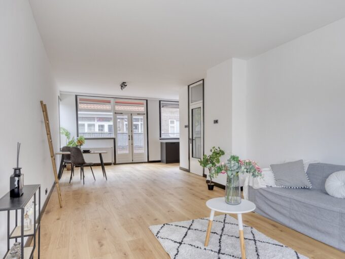 Deze leuke, volledig gerenoveerde bovenwoning heeft een prachtige woonkamer met…