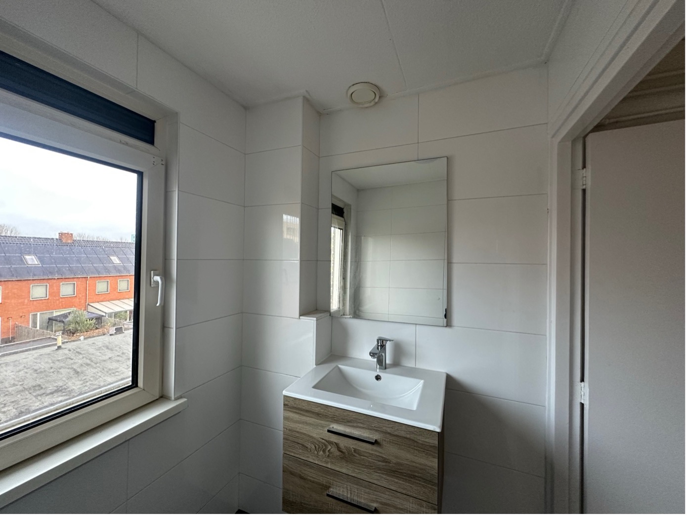 Overloop met toegang tot de wit betegelde badkamer (ca. 1,90 x 1,50m) met douche en vaste wastafel. Daarnaast beschikt het over drie slaapkamers (respectievelijk ca. 3,90 x 2,90m, 3,80 x 3,00m en 2,90 x 2,00m). De twee grote slaapkamers beschikken over een inbouwkast.