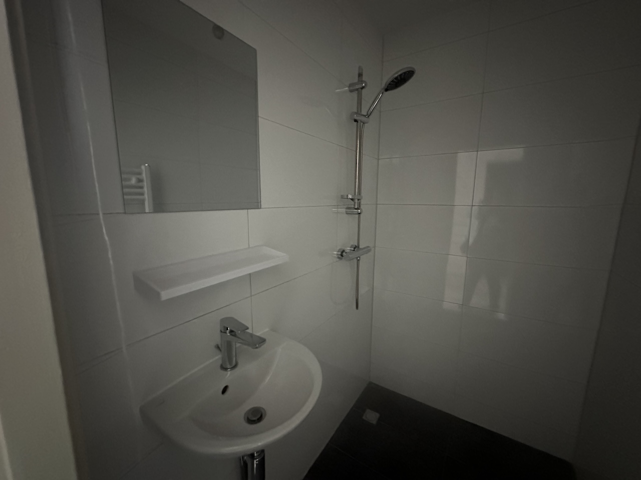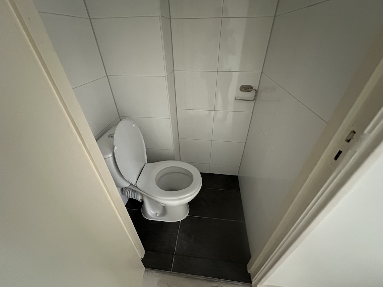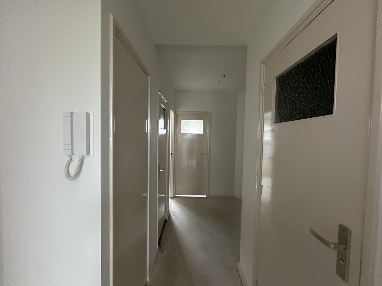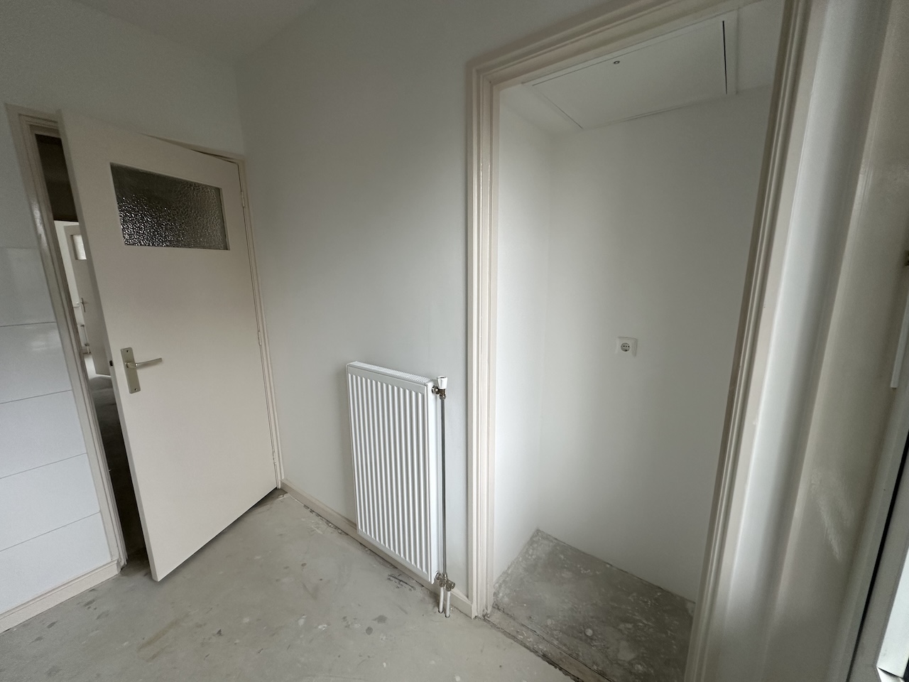 De indeling van de woning is als volgt: gang met toegang tot de opberg/meterkast, wit betegeld toilet met, wit betegelde badkamer (ca. 1,70 x 1,20m) met douche, vaste wastafel en design radiator, wit betegelde keuken (ca. 2,60 x 1,90m) met wit keukenblok, zwart aanrechtblad, 3 bovenkasten en afzuigkap, woonkamer (ca. 4,60 x 2,60/5,20m) en slaapkamer (3,40 x 2,50/3,10m).