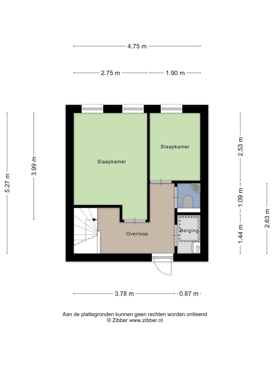 – Twee slaapkamers (respectievelijk ca. 4,00 x 2,80m en 2,50 x 1,90m).