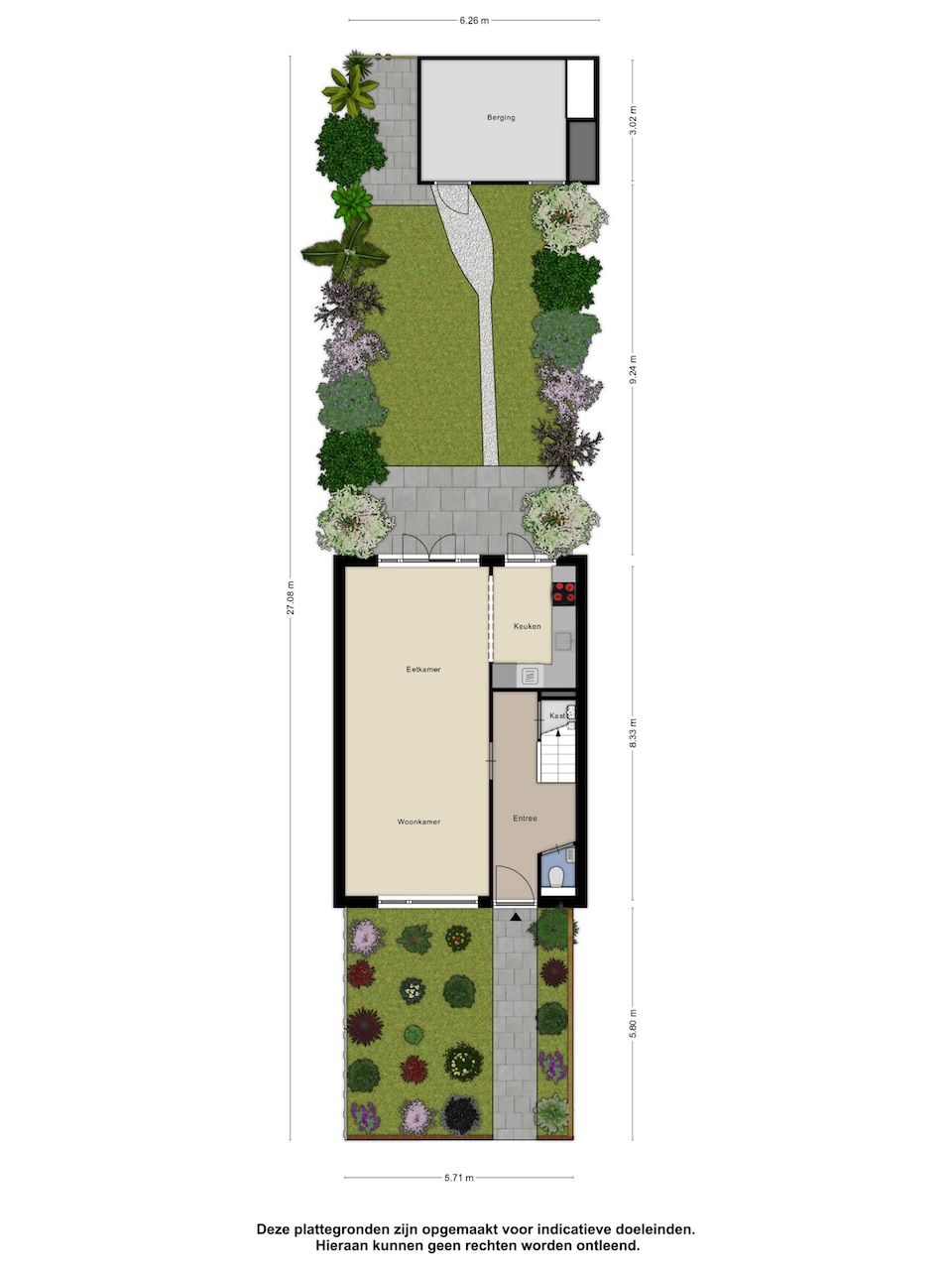 – De tuin beschikt over een schuur en een achterom.