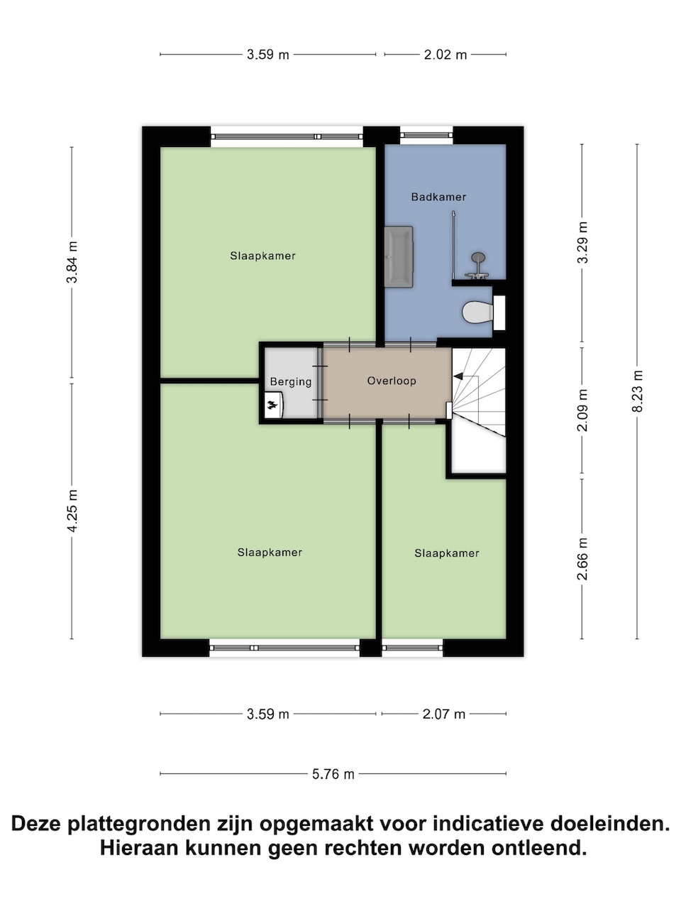 – Overloop met toegang tot de badkamer, berging met wasmachine aansluiting en drie slaapkamers (respectievelijk ca. 3,30/3,80 x 3,60m, 3,70/4,30 x 3,60m en 2,70/3,70 x 2,10m).