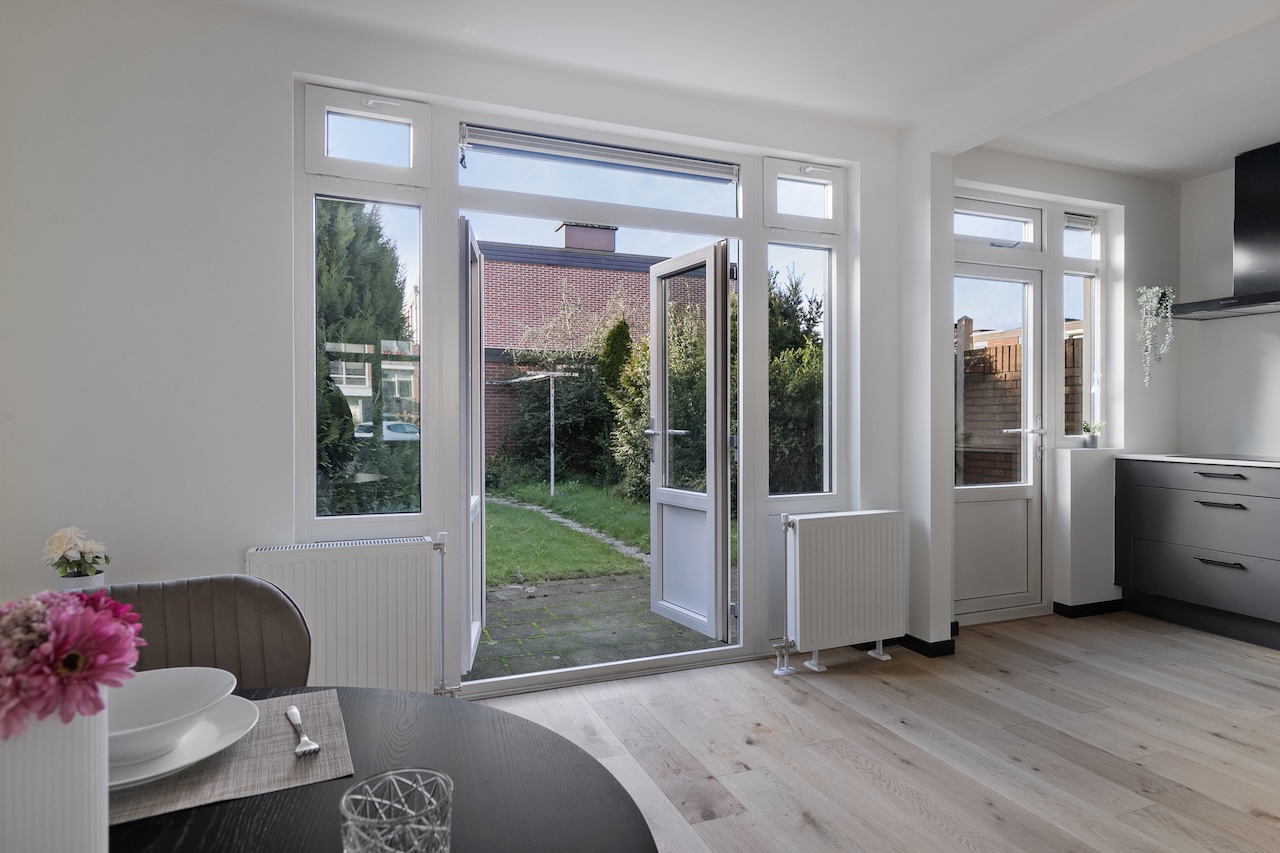 Deze jaren ’60 woning is helemaal turn key opgeleverd conform de woonwensen van nu met hoogwaardige materialen. De woning is voorzien van een nieuwe keuken met apparatuur, badkamer, toilet, centrale verwarming met HR-combi ketel, elektra en waterleidingen. Verder zijn alle muren en plafonds gestuukt, is het houtwerk geverfd en beschikt de gehele woning over lamelparket. Tevens is de woning geheel voorzien van houten kozijnen met dubbelglas. Kortom, je betrekt een compleet nieuwe woning welke op hoog niveau is gerenoveerd!
